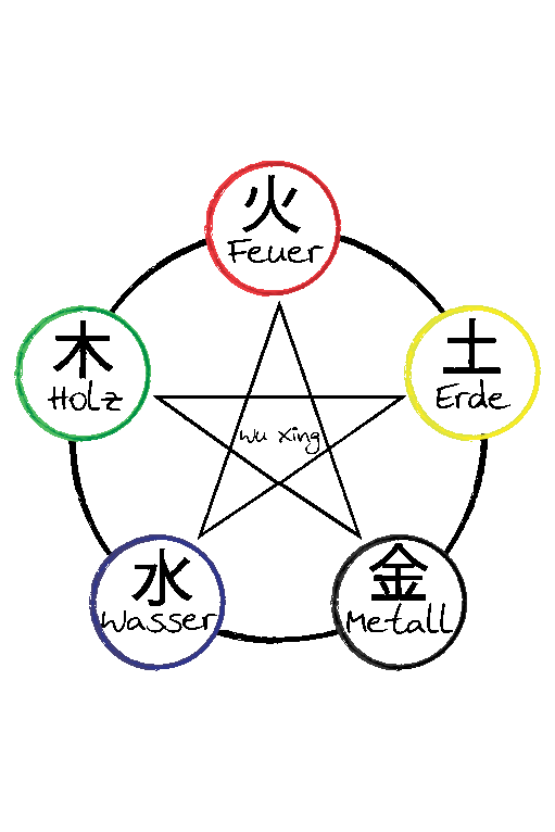 Das Konzept der Wandlungsphasen stammt aus der 5-Elemente-Lehre. Den fünf Elementen Holz, Feuer, Erde, Metall und Wasser sind jeweils Eigenschaften zugewiesen, die bei einem psychisch und physisch gesunden Menschen harmonisch zusammenspielen. Kommt jedoch eines aus dem Gleichgewicht, wird der Mensch krank.